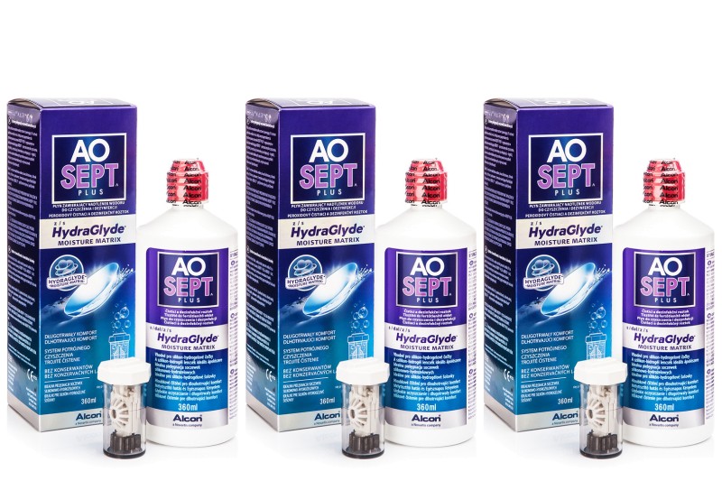 AOSEPT PLUS z Hydraglyde 3 x 360 ml z pojemnikami