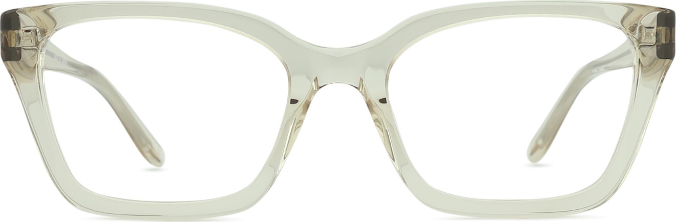 Beżowy kolor oprawek doskonale pasuje do ciepłego odcienia skóry oraz do jasnobrązowych włosów.
