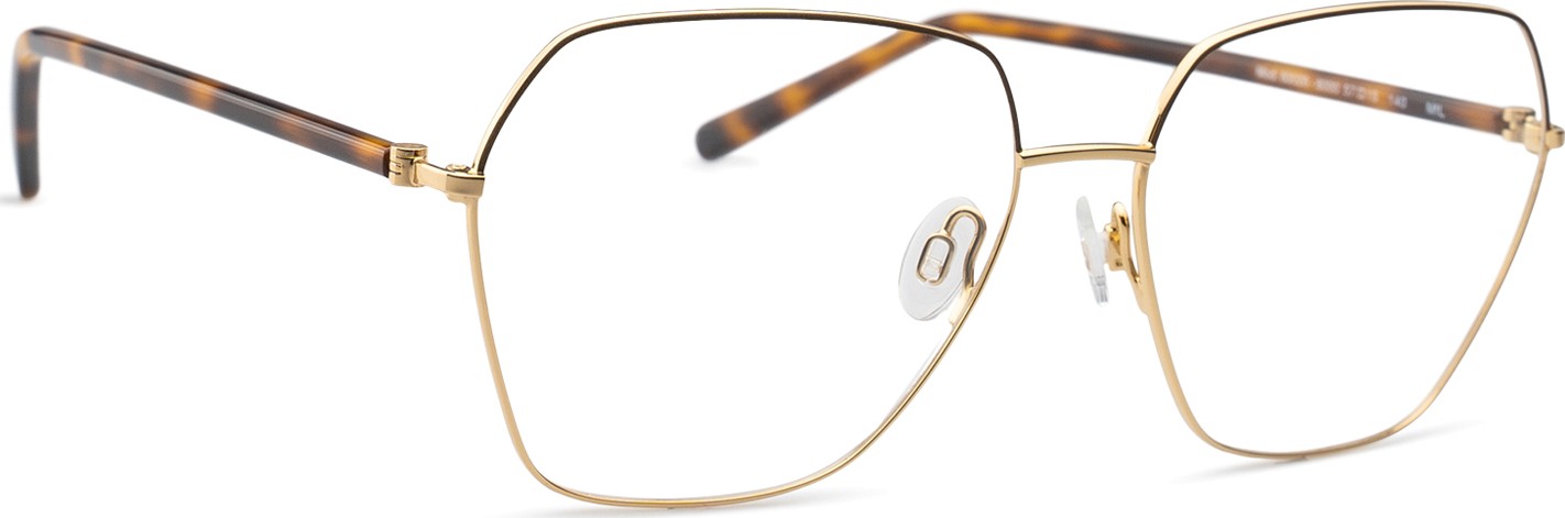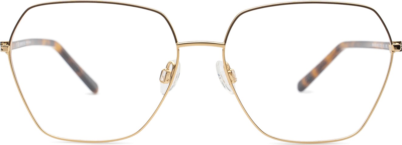 - Złoty kolor oprawek doskonale pasuje do ciepłego odcienia skóry oraz do ciemnobrązowych włosów.