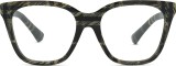 Oprawka okularów wykonana jest z acetatu, który jest hipoalergiczny, wytrzymały i wygodny w noszeniu.