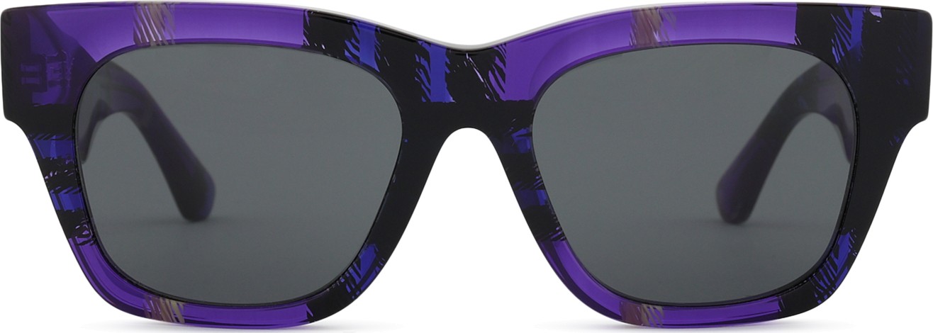 - Fioletowy kolor oprawek doskonale pasuje do chłodnego odcienia skóry oraz do czarnych, szarych, białych lub jasnoblond włosów.