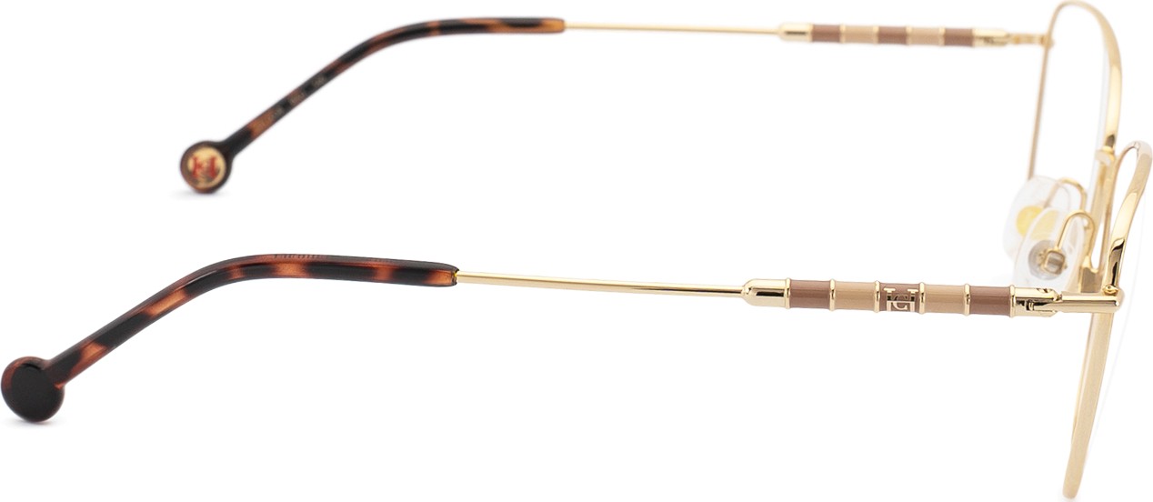 - Beżowy kolor oprawek doskonale pasuje do ciepłego odcienia skóry oraz do jasnobrązowych włosów.