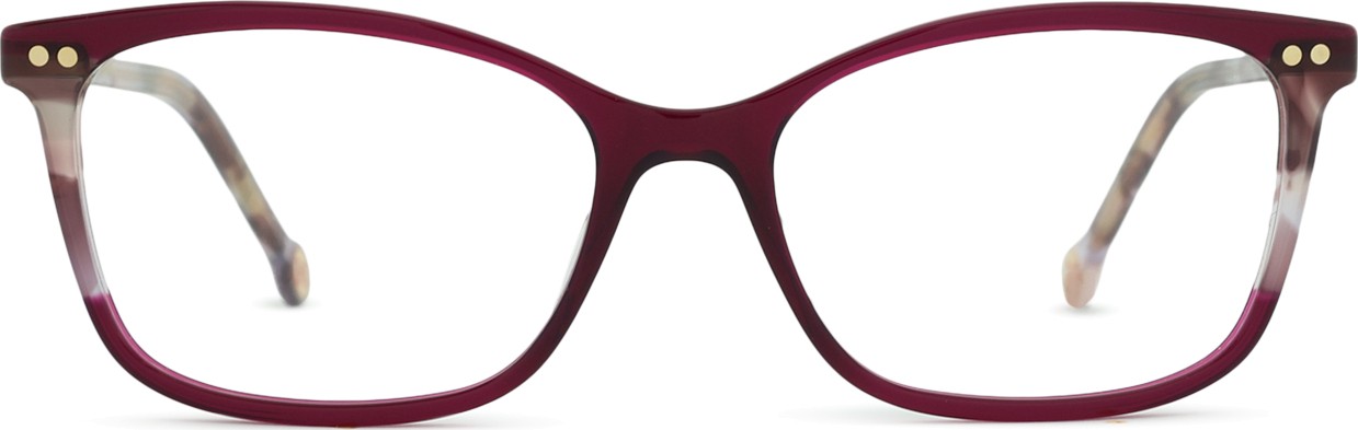 - Fioletowy kolor oprawek doskonale pasuje do chłodnego odcienia skóry oraz do czarnych, szarych, białych lub jasnoblond włosów.