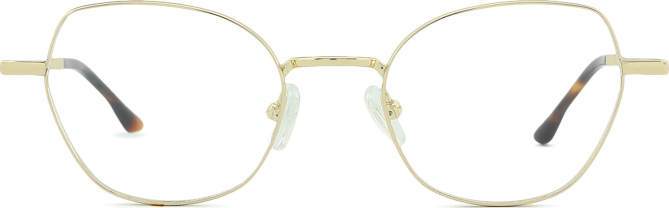 Złoty kolor oprawek doskonale pasuje do ciepłego odcienia skóry oraz do ciemnobrązowych włosów.
