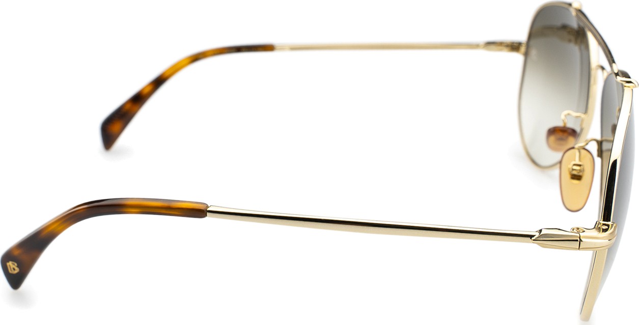 - Złoty kolor oprawek doskonale pasuje do ciepłego odcienia skóry oraz do ciemnobrązowych włosów.