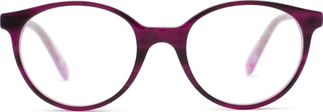 • Fioletowy kolor oprawek doskonale pasuje do chłodnego odcienia skóry oraz do czarnych, szarych, białych lub jasnoblond włosów.
