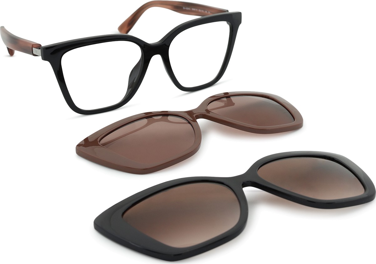 Do okularów dołączony jest również dodatkowy klips przeciwsłoneczny, który łatwo przypina się do oprawki okularowej, dzięki czemu natychmiast otrzymujesz okulary przeciwsłoneczne. Klips swoim wykonaniem i designem doskonale odwzorowuje kształt oprawki, a jego montaż jest bardzo szybki i prosty. W przypadku wyższych dioptrii plusowych konieczne jest jednak wybranie cieńszej wersji soczewek okularowych, aby klips nie dotykał przedniej sferycznej powierzchni soczewek i prawidłowo leżał na oprawce.