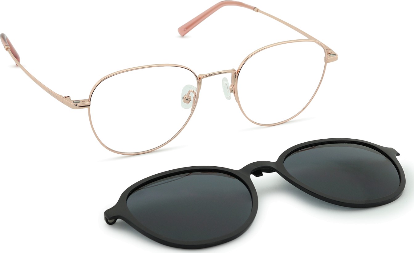 - Do okularów dołączony jest również dodatkowy klips przeciwsłoneczny, który łatwo przypina się do oprawki okularowej, dzięki czemu natychmiast otrzymujesz okulary przeciwsłoneczne. Klips swoim wykonaniem i designem doskonale odwzorowuje kształt oprawki, a jego montaż jest bardzo szybki i prosty. W przypadku wyższych dioptrii plusowych konieczne jest jednak wybranie cieńszej wersji soczewek okularowych, aby klips nie dotykał przedniej sferycznej powierzchni soczewek i prawidłowo leżał na oprawce.