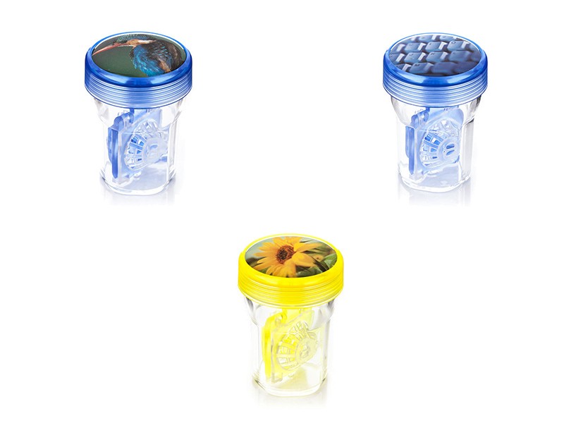 Wysokie etui jest idealne do przechowywania i chemicznej dezynfekcji soczewek kontaktowych. Swoim kształtem, zastosowaniem i kolorystyką zachwyca i cieszy, przezroczysty pojemnik i oryginalny obrazek na wieczku z pewnością przyciągną uwagę. Wybierz z całej palety motywów i kolorów.