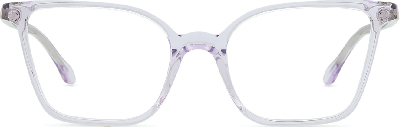 - Fioletowy kolor oprawek doskonale pasuje do chłodnego odcienia skóry oraz do czarnych, szarych, białych lub jasnoblond włosów.