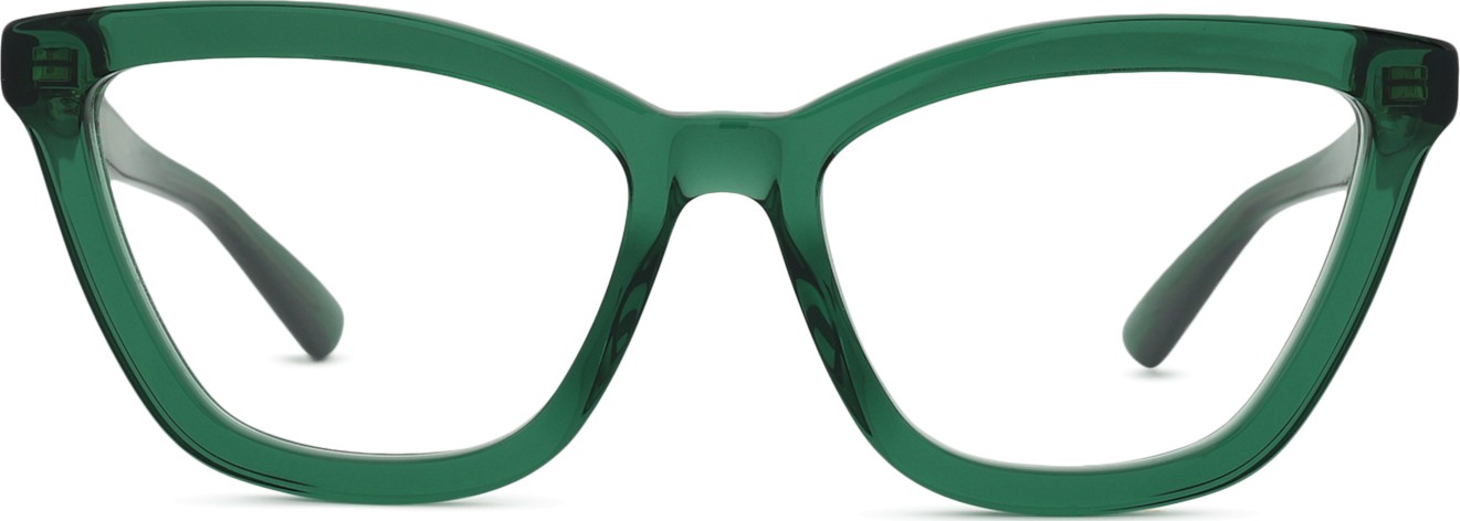 Zielony kolor oprawek doskonale pasuje do chłodnego odcienia skóry oraz do ciemnobrązowych, czarnych lub rudych włosów.