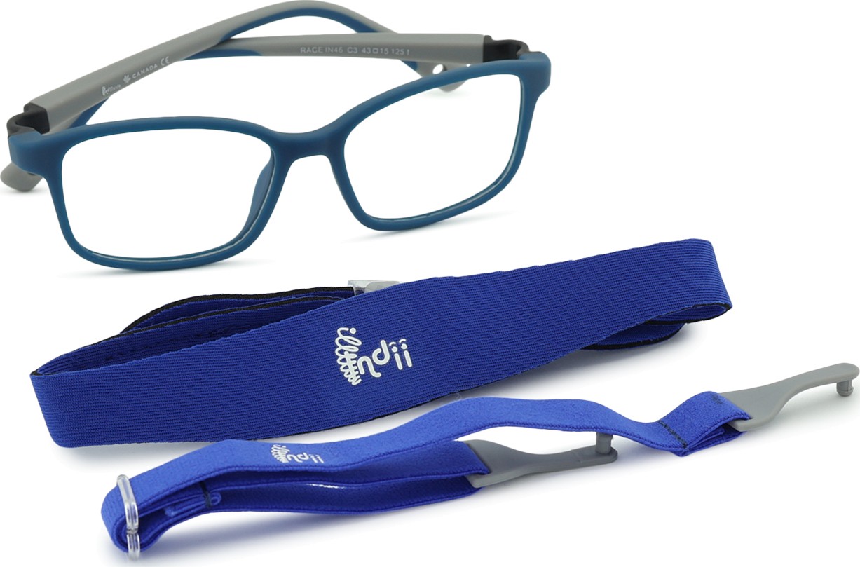 Model okularów Indii Kids IN posiada dwa regulowane tekstylne paski, które pomagają wyeliminować ryzyko zgubienia okularów i zapewniają lepsze mocowanie na głowie podczas różnych aktywności dziecięcych.