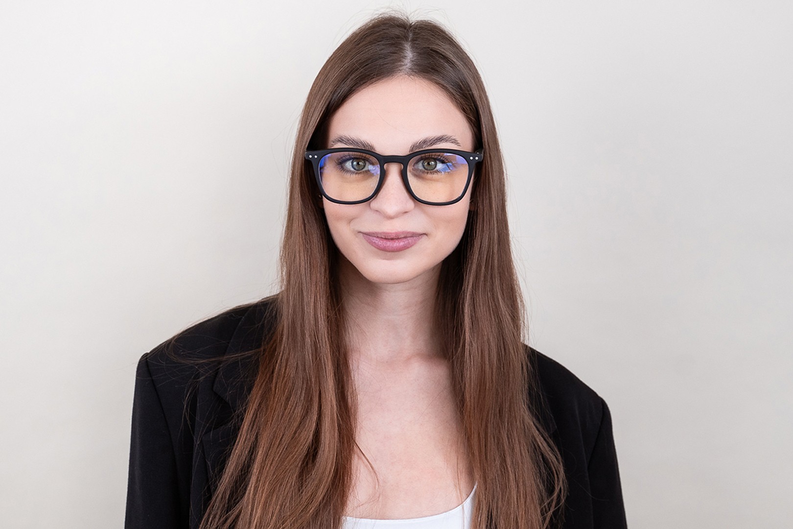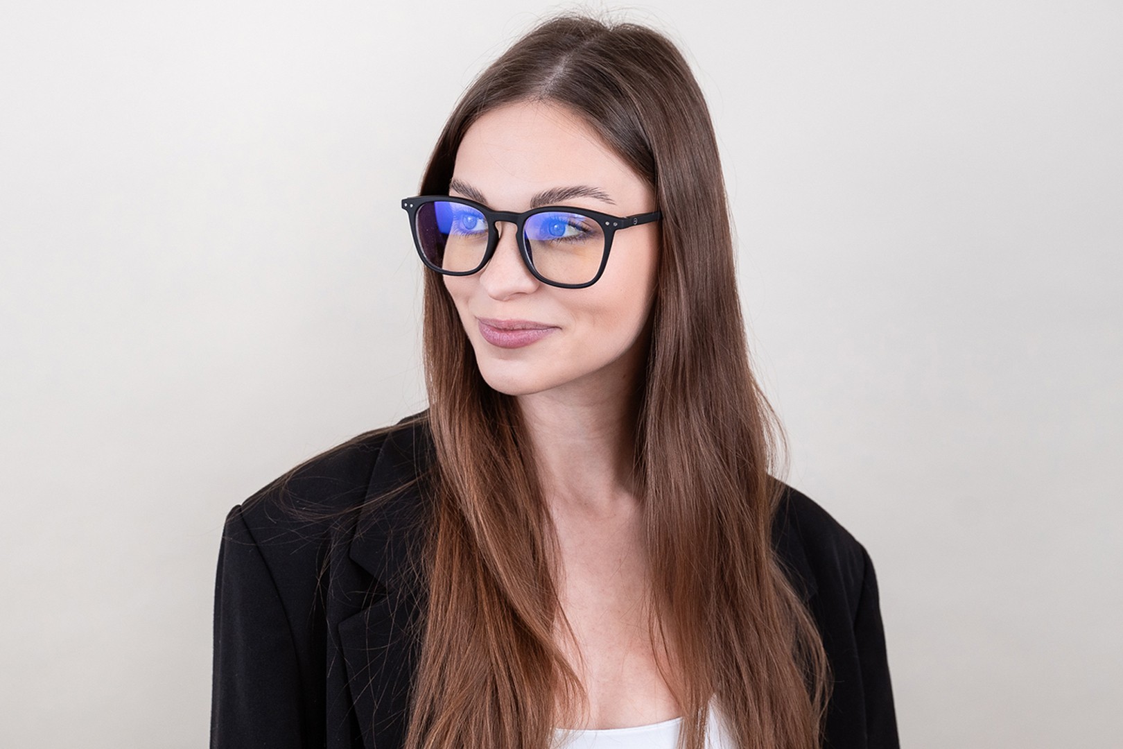 - Czarny kolor oprawek doskonale pasuje do chłodnego odcienia skóry oraz do jasnobrązowych, czarnych lub jasnoblond włosów.