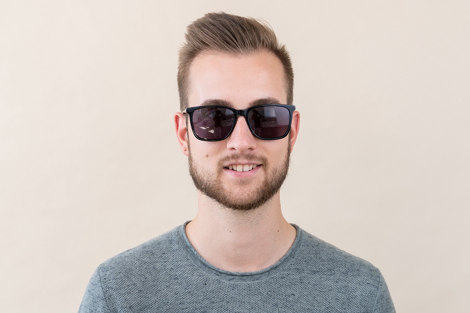 Skorzystaj z funkcji wirtualnego przymierzania i zobacz, jak wyglądasz w okularach przeciwsłonecznych.