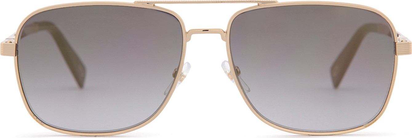 - Złoty kolor oprawek doskonale pasuje do ciepłego odcienia skóry oraz do ciemnobrązowych włosów.