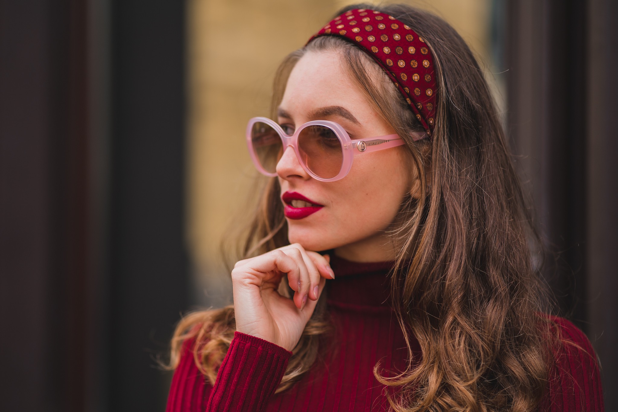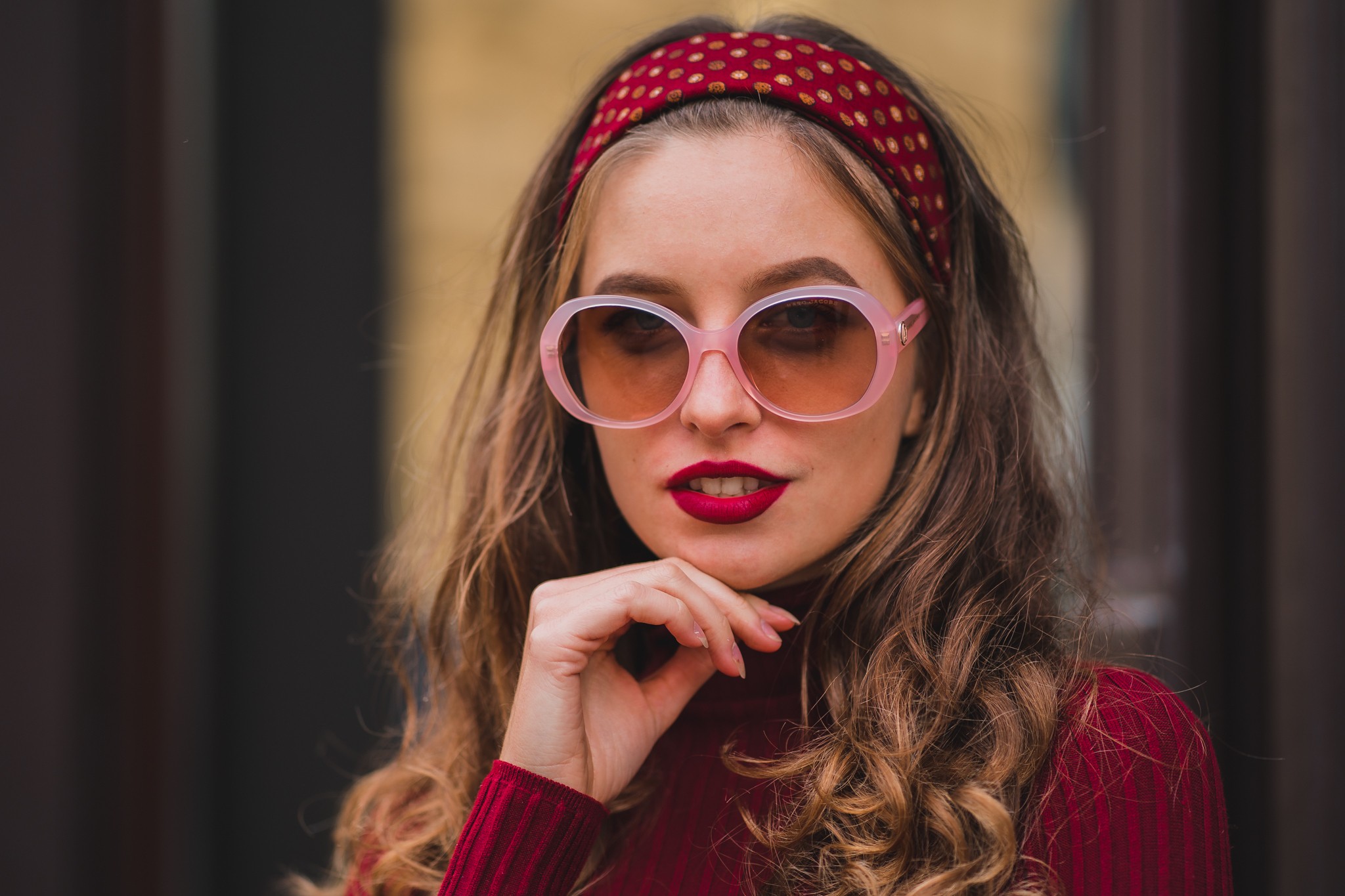 - Różowy kolor oprawek doskonale pasuje do chłodnego odcienia skóry oraz do jasnobrązowych lub jasnoblond włosów.