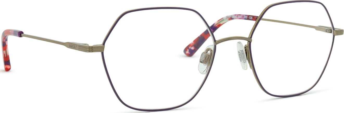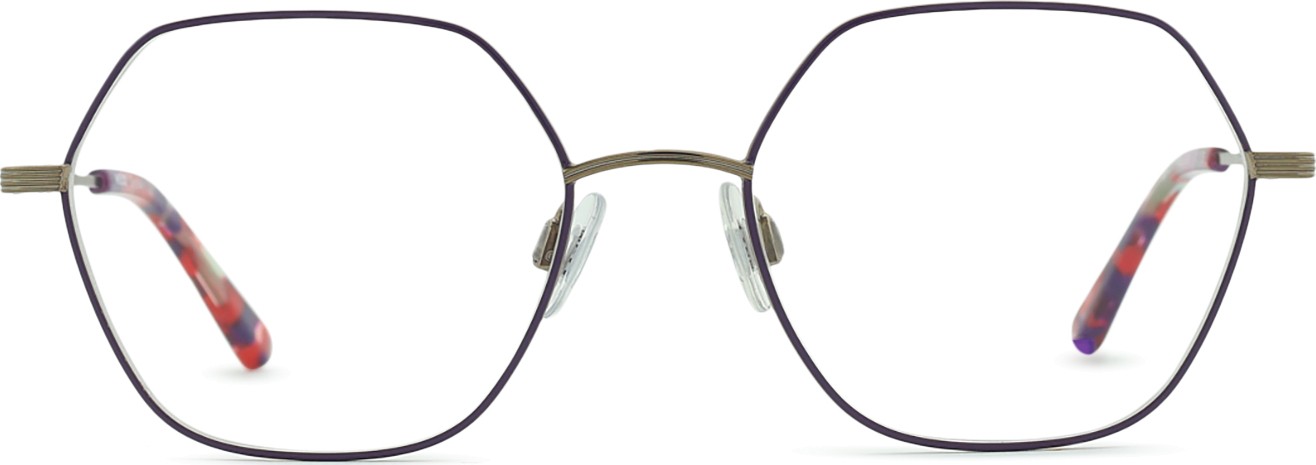 - Fioletowy kolor oprawek doskonale pasuje do chłodnego odcienia skóry oraz do czarnych, szarych, białych lub jasnoblond włosów.