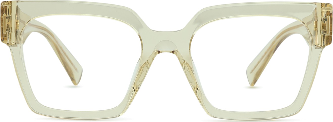 • Beżowy kolor oprawek doskonale pasuje do ciepłego odcienia skóry oraz do jasnobrązowych włosów.