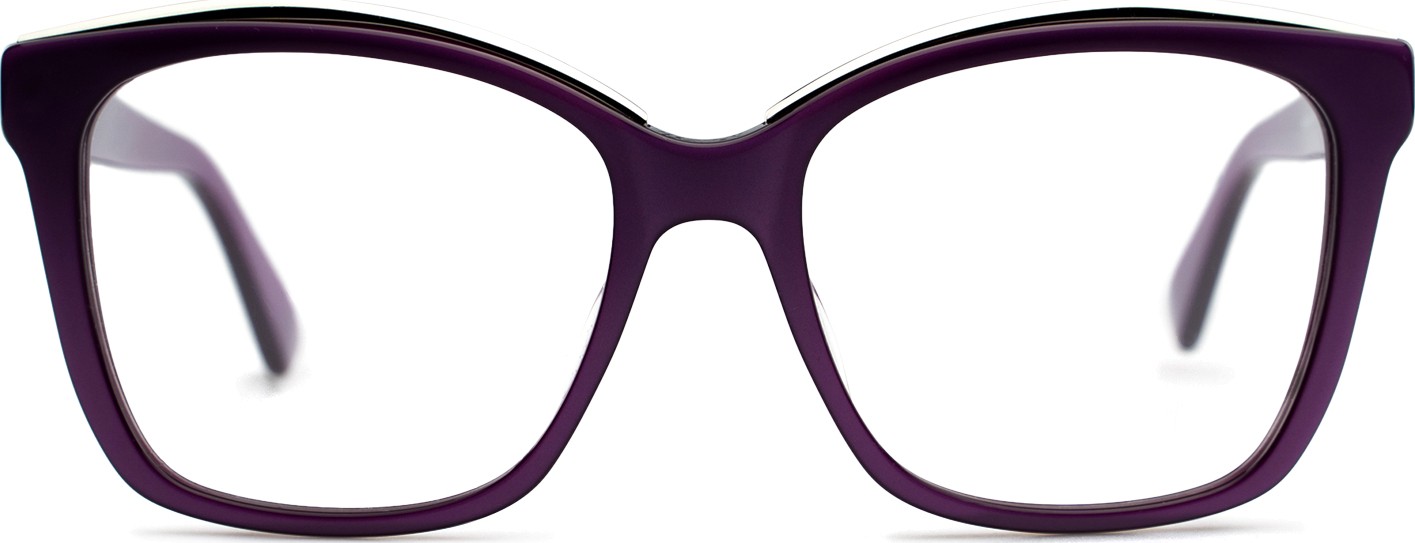 • Fioletowy kolor oprawek doskonale pasuje do chłodnego odcienia skóry oraz do czarnych, szarych, białych lub jasnoblond włosów.
