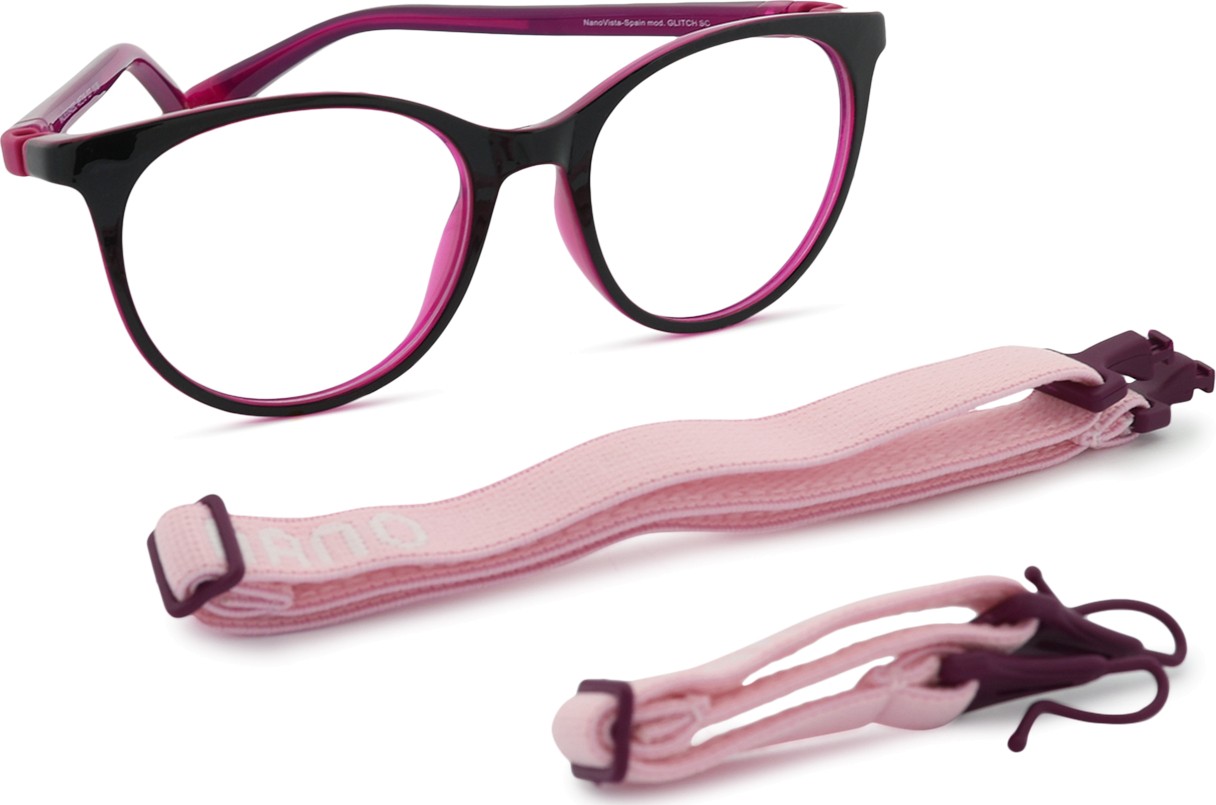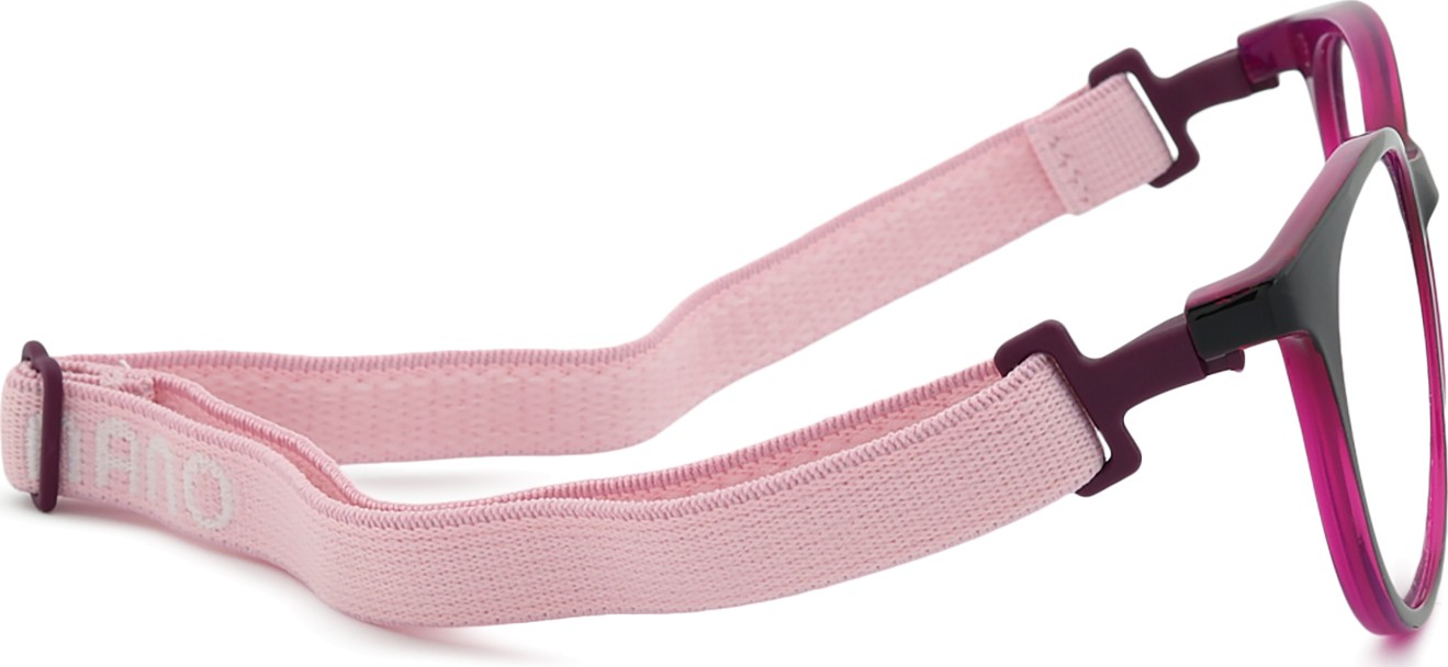 Model okularów Glitch posiada dwa regulowane paski tekstylne, które pomagają wyeliminować ryzyko zgubienia okularów i zapewniają lepsze mocowanie na głowie podczas różnych aktywności dziecięcych.