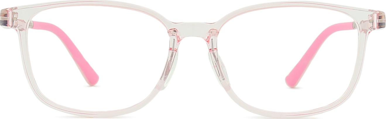 Różowy kolor oprawek doskonale pasuje do chłodnego odcienia skóry oraz do jasnobrązowych lub jasnoblond włosów.