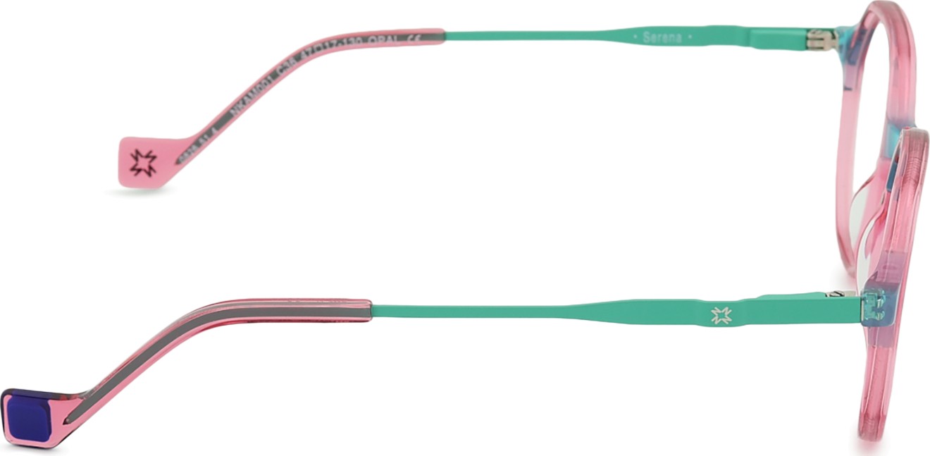 Różowy kolor oprawek doskonale pasuje do chłodnego odcienia skóry oraz do jasnobrązowych lub jasnoblond włosów.