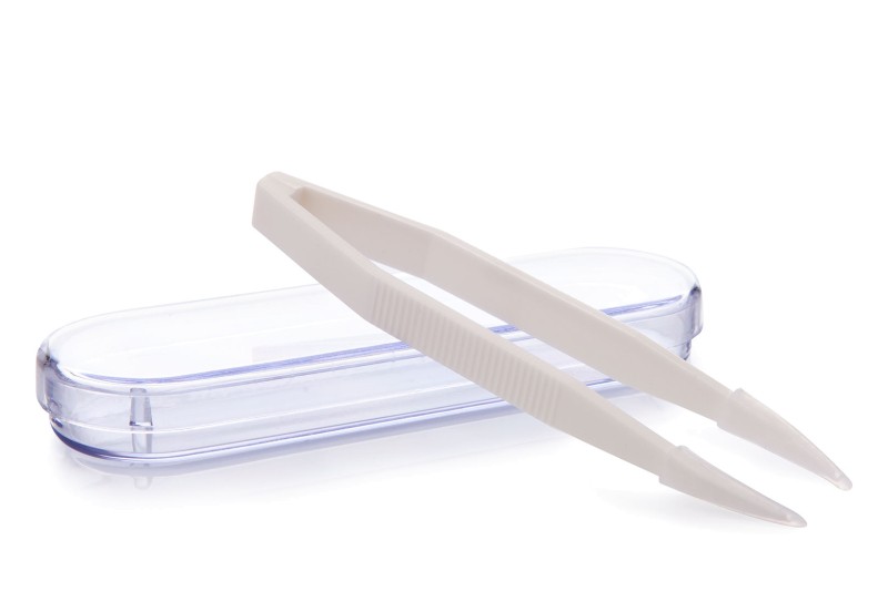 Pęseta z etui – średnia. Pęseta do soczewek kontaktowych z silikonowymi nakładkami jest przeznaczona do łatwej i delikatnej manipulacji z miękkimi soczewkami kontaktowymi. Użycie pęsety podczas manipulacji z soczewką jest bardziej sterylne i zmniejsza ryzyko uszkodzenia soczewki kontaktowej. Pęseta jest dostarczana w praktycznym plastikowym etui, które chroni pęsetę przed zanieczyszczeniem. Przy wielokrotnym użyciu pęsety należy dbać o dokładną sterylizację za pomocą środka dezynfekującego lub gorącej wody.