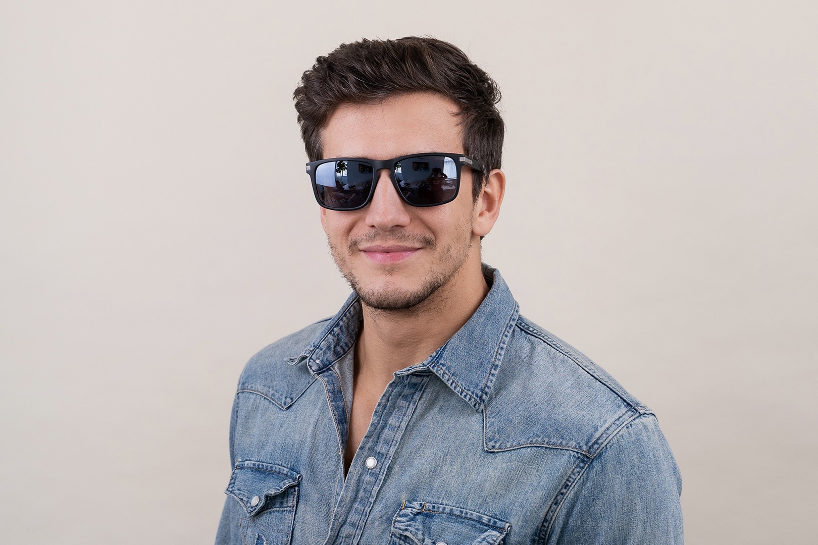 Skorzystaj z funkcji wirtualnego przymierzania i zobacz, jak wyglądasz w okularach przeciwsłonecznych.