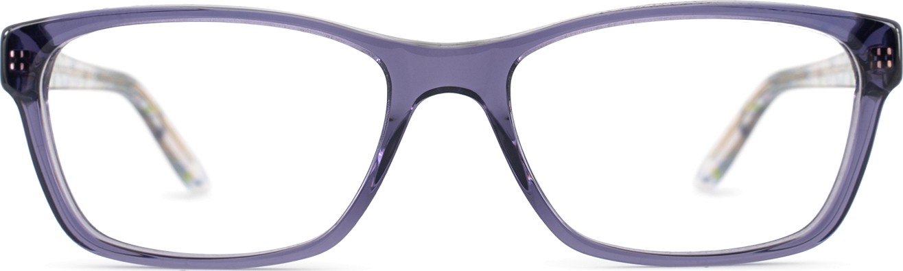 - Fioletowy kolor oprawek doskonale pasuje do chłodnego odcienia skóry oraz do czarnych, szarych, białych lub jasnoblond włosów.