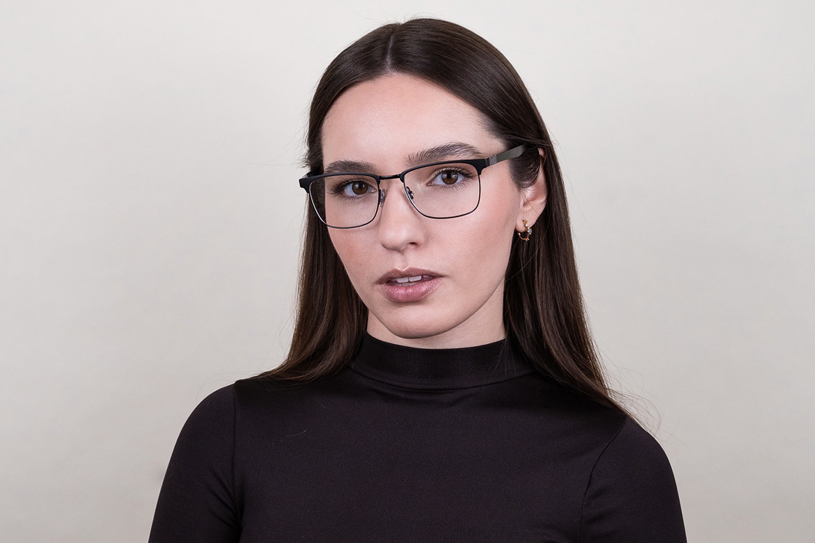 - Czarny kolor oprawek doskonale pasuje do chłodnego odcienia skóry oraz do jasnobrązowych, czarnych lub jasnoblond włosów.