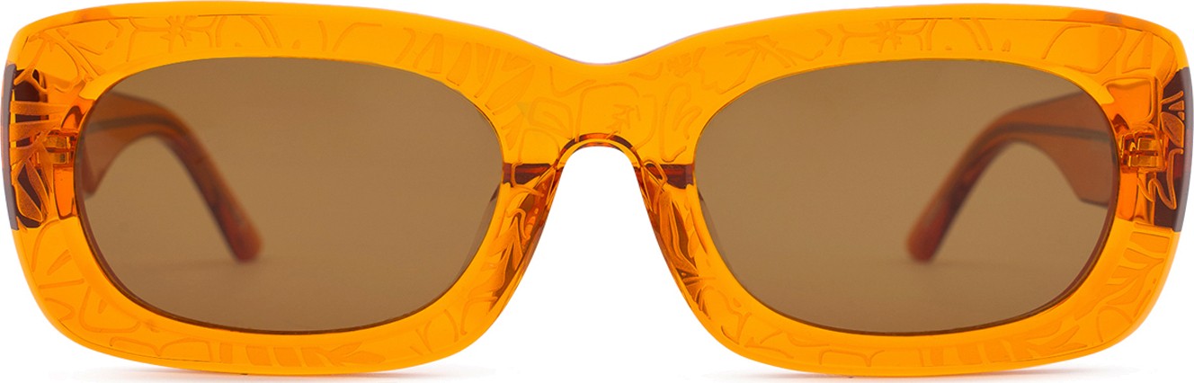 - Pomarańczowy kolor oprawek doskonale pasuje do ciepłego odcienia skóry oraz do czarnych, ciemnobrązowych i ciemnoblond włosów.