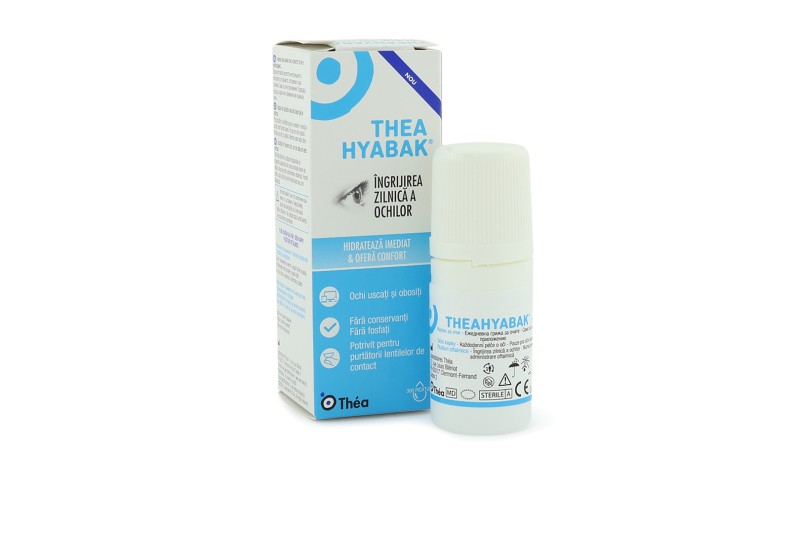 Krople do oczu TheaHyabak nawilżają i zwilżają oczy w przypadku uczucia suchości oka lub zmęczenia oczu spowodowanego czynnikami zewnętrznymi, takimi jak wiatr, dym, zanieczyszczenia, kurz, suche ciepło, klimatyzacja lub długotrwała praca przy komputerze. Mogą być również stosowane do nawilżania soczewek kontaktowych, dzięki czemu ich zakładanie i zdejmowanie jest łatwiejsze.