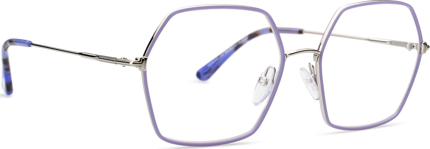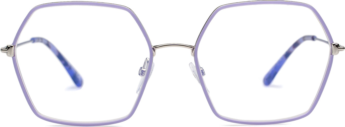 - Fioletowy kolor oprawek doskonale pasuje do chłodnego odcienia skóry oraz do czarnych, szarych, białych lub jasnoblond włosów.