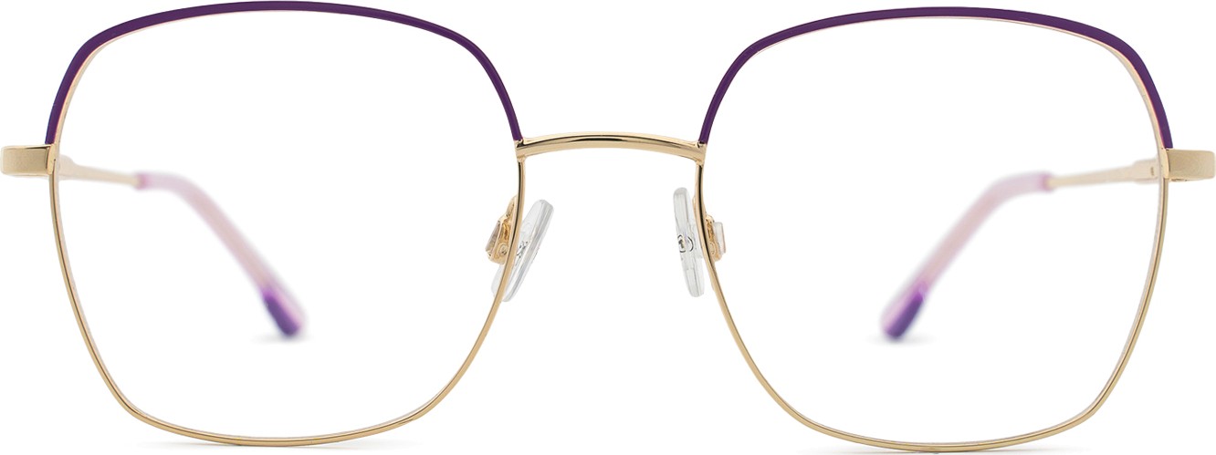 - Fioletowy kolor oprawek doskonale pasuje do chłodnego odcienia skóry oraz do czarnych, szarych, białych lub jasnoblond włosów.