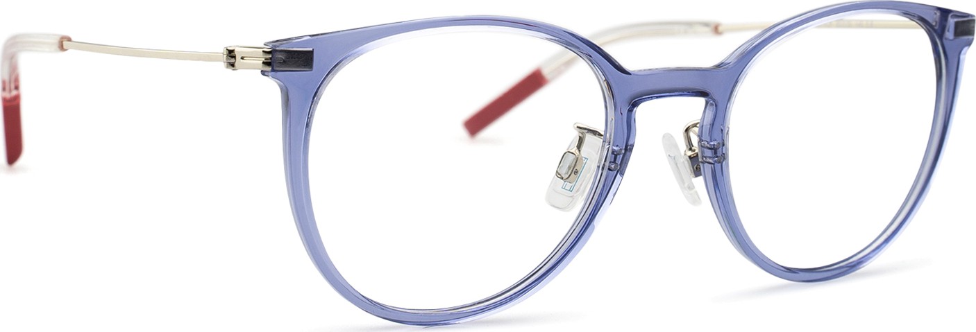 - Niebieski kolor oprawek doskonale pasuje do chłodnego odcienia skóry oraz do jasnobrązowych, czarnych lub jasnoblond włosów.