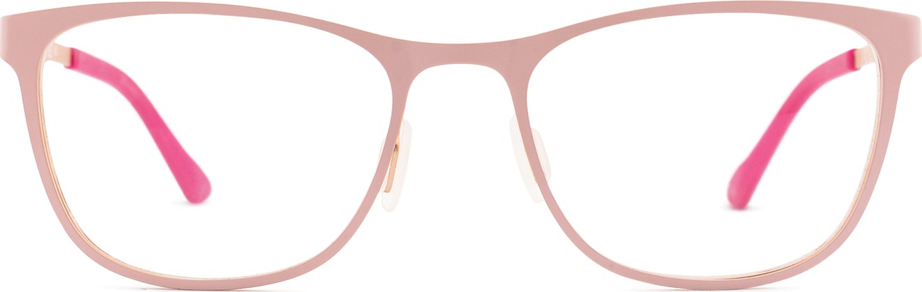 Różowy kolor oprawek doskonale pasuje do chłodnego odcienia skóry oraz do jasnobrązowych lub jasnoblond włosów.
