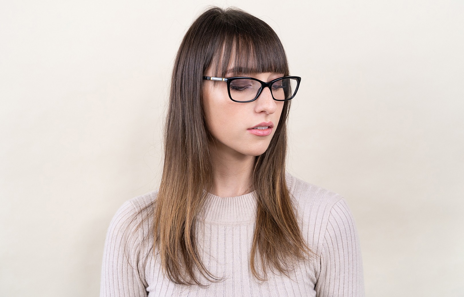 • Czarny kolor oprawek doskonale pasuje do chłodnego odcienia skóry oraz do jasnobrązowych, czarnych lub jasnoblond włosów.